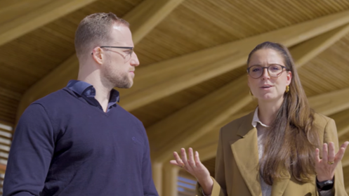 O documentário reúne depoimentos de profissionais com atuação internacional que contextualizam a pesquisa em um cenário mais amplo da engenharia contemporânea em madeira. Entre eles estão Erick Karsh, do escritório canadense Equilibrium, Evy Slabbinck, da Design-to-Production, na Bélgica, e Stefan Rick, da suíça SJB Kempter Fitze. As falas estabelecem paralelos entre a viga lenticular fletida e projetos de referência global, como o Wisdome Stockholm, reforçando a pertinência do tema no debate atual sobre estruturas de forma livre.